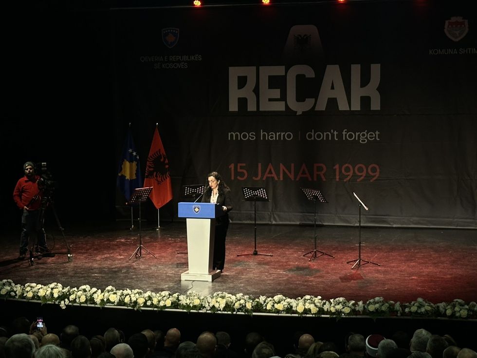 “Sikurse çdo vjet edhe sot jemi në Reçak, në fshatin e vogël por me histori të madhe. Aty ku 26 vjet më parë, njerëzorja dhe mizorja patën ndeshjen më makabre në këtë pjesë të Evropës. Në një ditë të zymtë të janarit të vitit 1999, 45 banor të Reçakut, burra, gra e të moshuar u masakruan nga regjimi gjenocidal i Serbisë duke shpërfaqur fytyrën e egër të gjenocidit dhe shtypjes”, ka thënë presidentja Osmani.