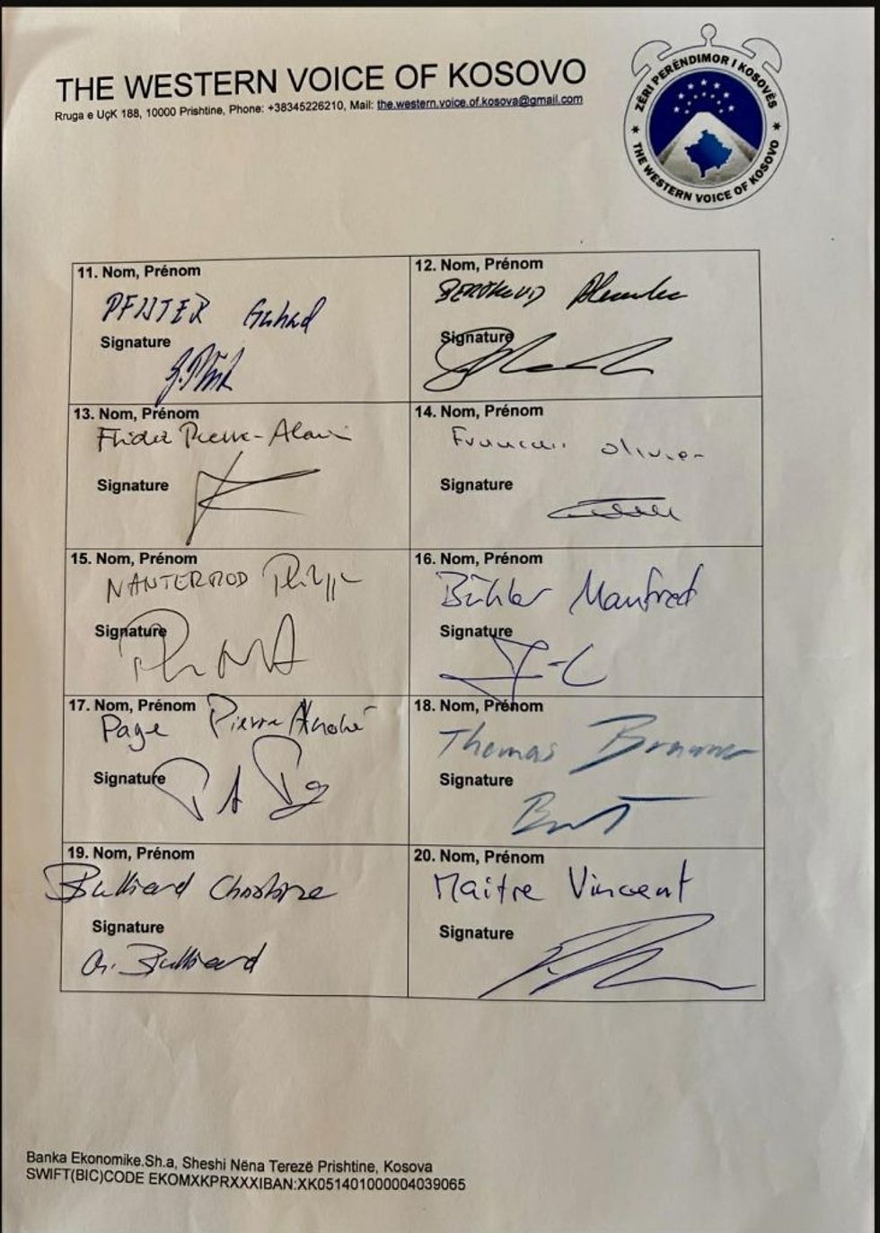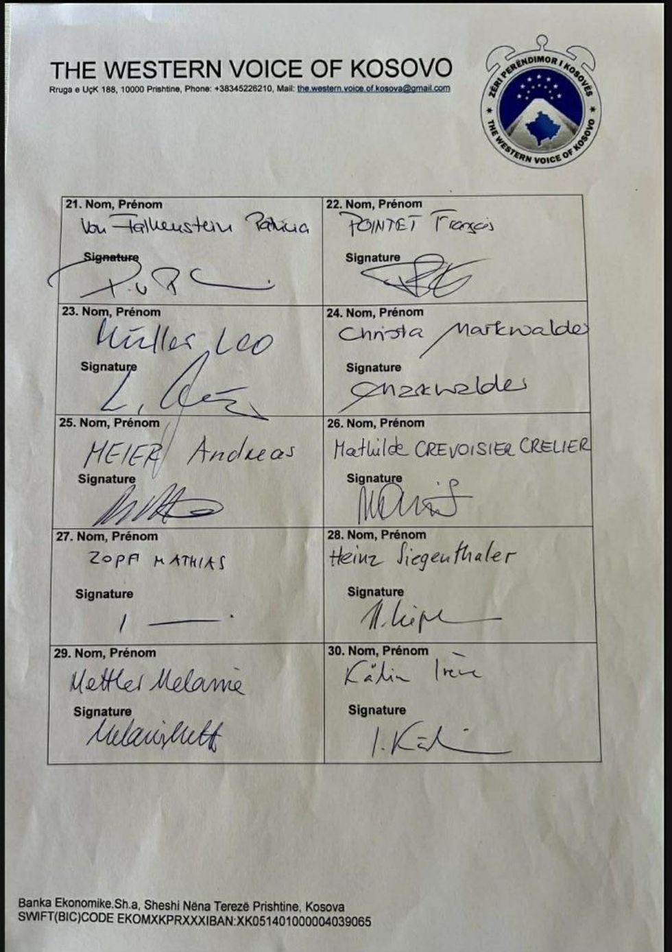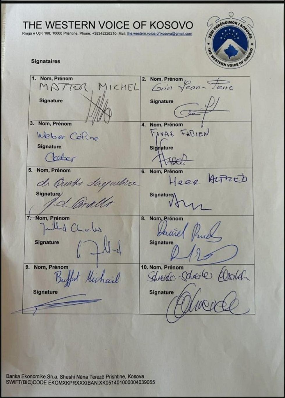 Më poshtë Rezoluta me 30 deputetë zviceran të nënshkruar.