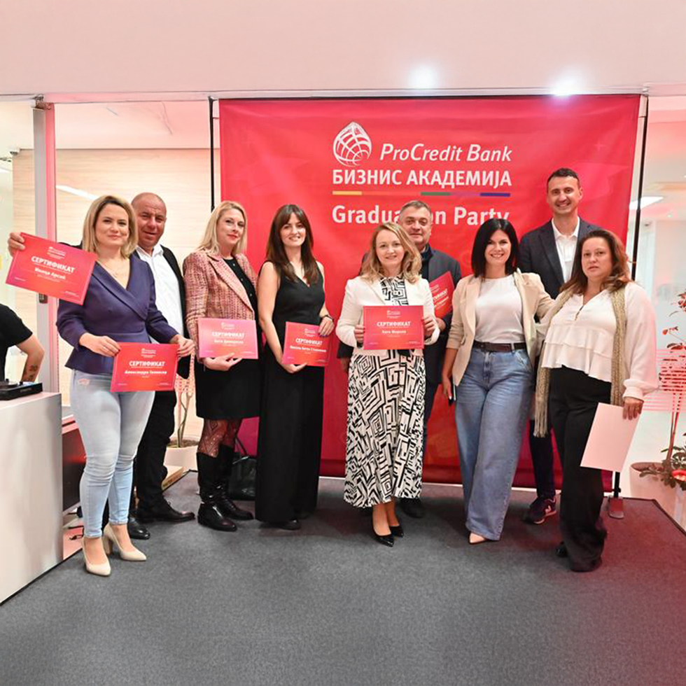 Me përfundimin e suksesshëm të gjeneratës së parë, ProCredit njofton se Akademia e Biznesit do të vazhdojë edhe në vitin 2026, ndërsa regjistrimet për gjeneratën e re të pjesëmarrësve do të fillojnë së shpejti.