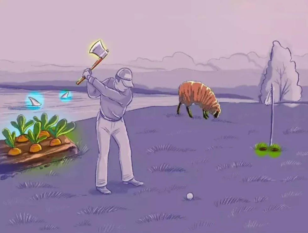 Më e rëndësishmja, ka dy vrima golfi pranë njëra-tjetrës dhe disa karrota të mbjellura në fushë.