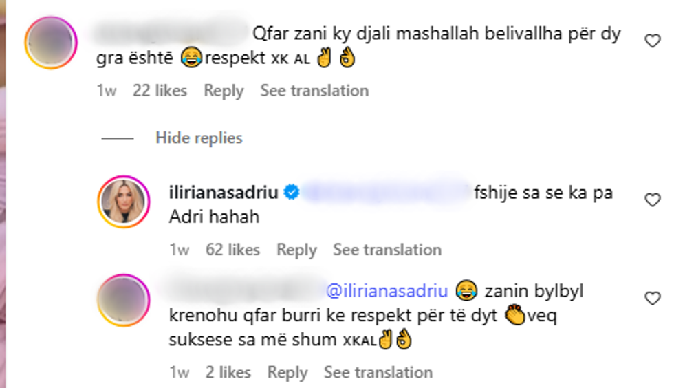Ky koment shkaktoi të qeshura, dhe nuk mungoi as reagimi me humor i Ilirianës, e cila iu përgjigj me sportivitet: