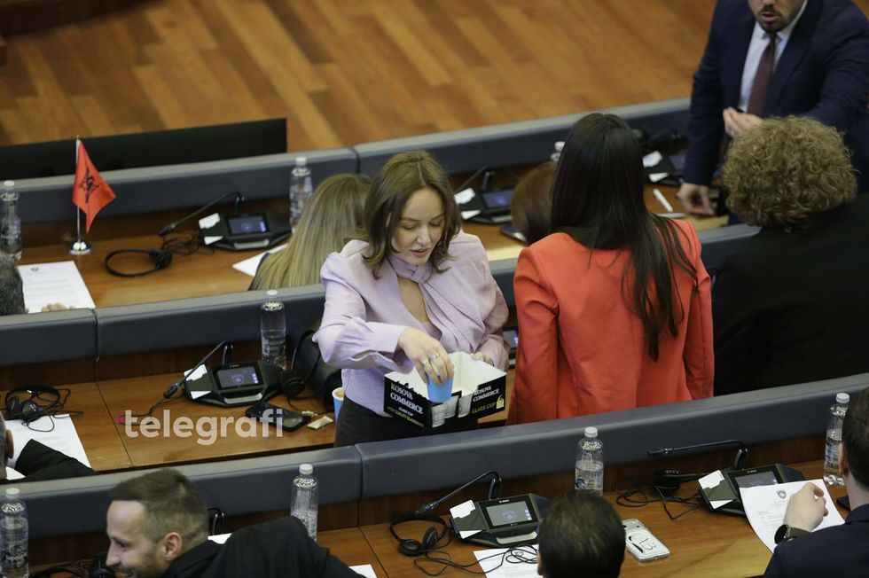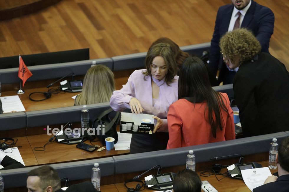 Adriana Matoshi u shërben kafe kolegëve në Kuvend para nisjes së seancës
