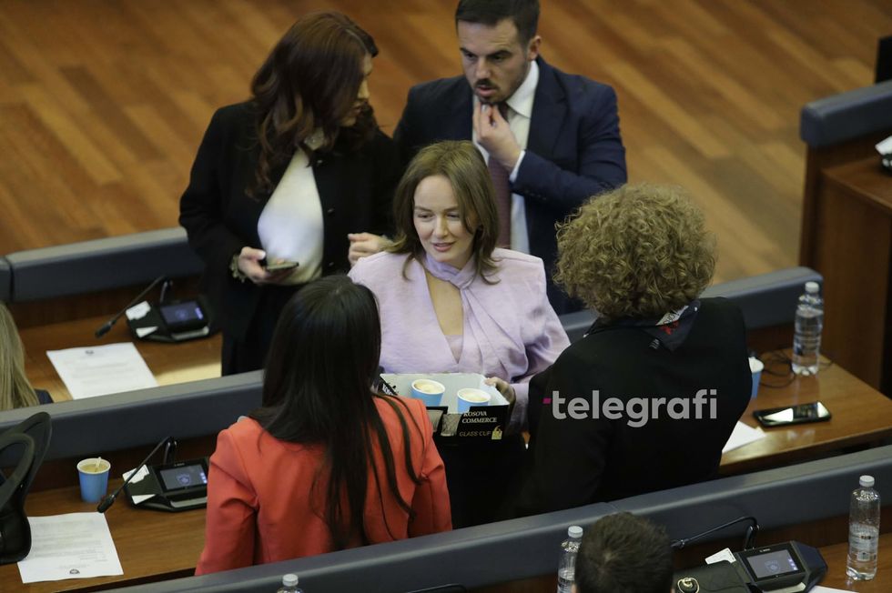 Deputetja e Lëvizja Vetëvendosje është fotografuar para nisjes së seancës, teksa u shërbente me kafe disa prej kolegëve të saj të partisë.