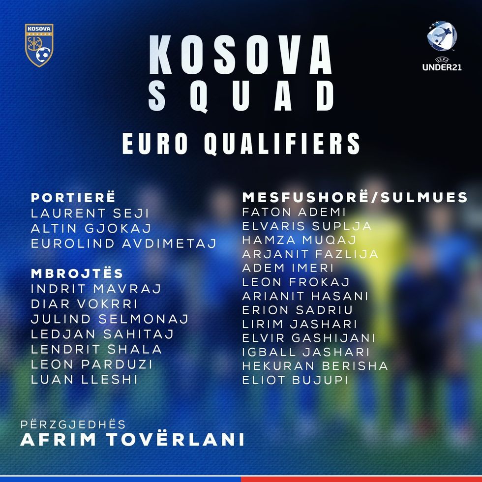 Kombëtarja e Kosovës U21 ka publikuar listën e futbollistëve të ftuar nga përzgjedhësi Afrim Tovërlani për ndeshjet e muajit tetor.
