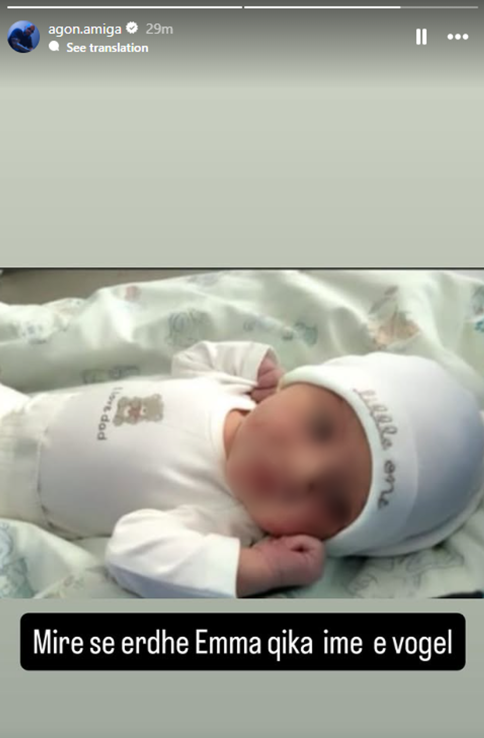 “Mirë se erdhe Emma, çika ime e vogël”, ka shkruar ai.