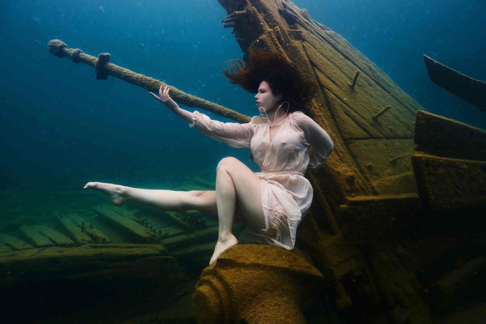 Rezultati i kësaj përpjekjeje të pazakontë janë fotografitë spektakolare që tregojnë Ciara Antoski duke "vallëzuar" mbi një anije të mbytur me një fustan të bardhë, duke krijuar skena surreale dhe përrallore nën sipërfaqen e detit.