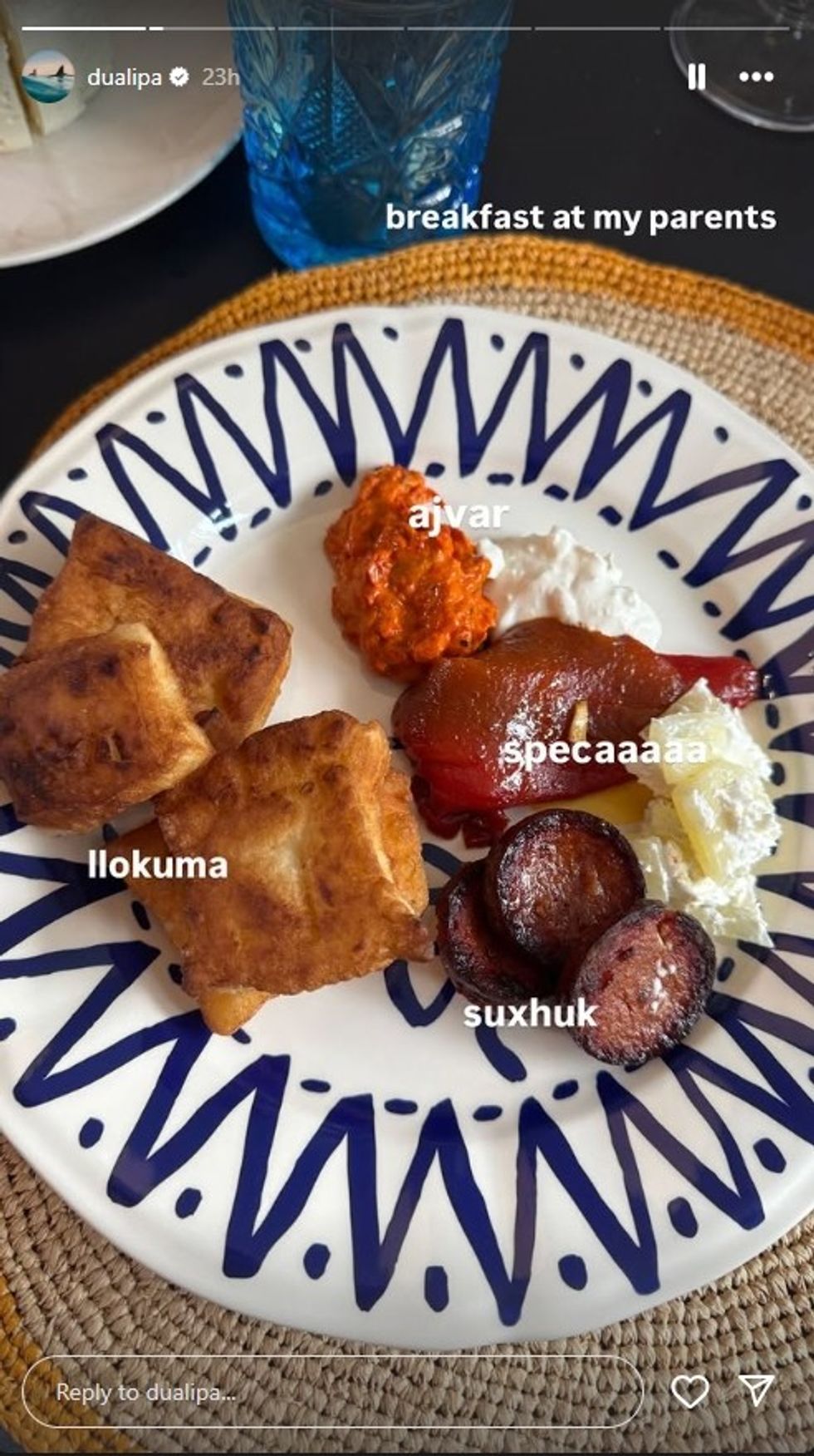 "Ajvar, llokuma e suxhuk", Dua Lipa ndan me ndjekësit mëngjesin tradicional shqiptar që e ha në shtëpinë e saj