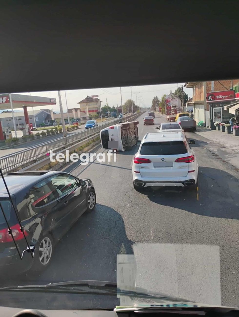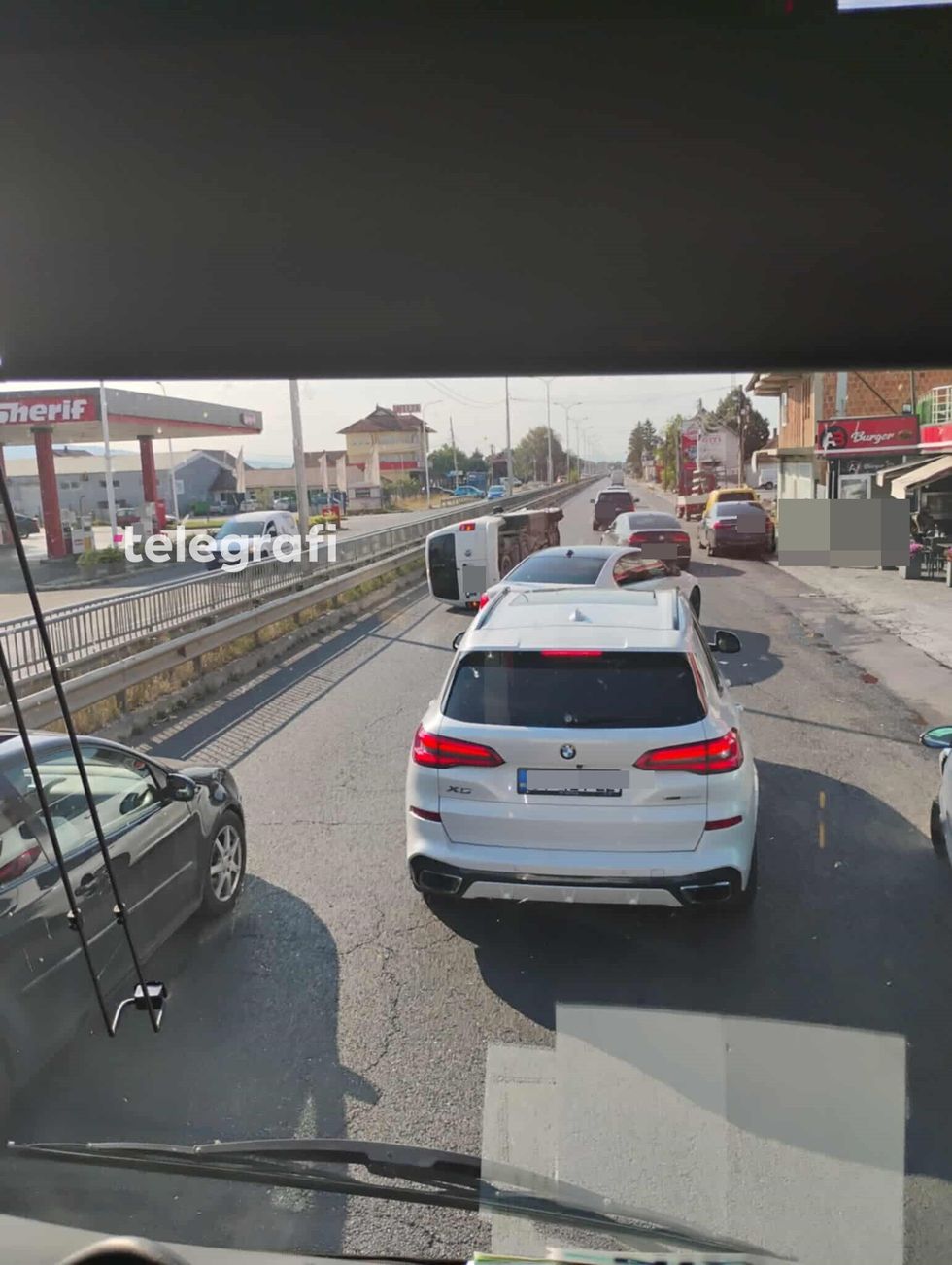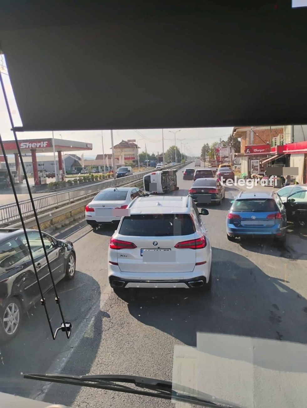 Lexues të Telegrafit kanë dërguar fotografi të aksidentit, gjersa shihet një veturë e rrotulluar.