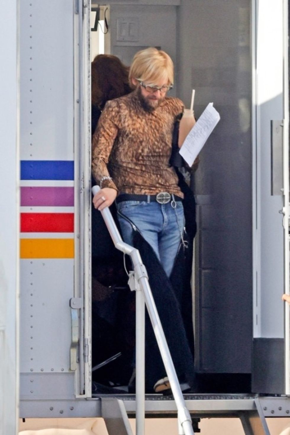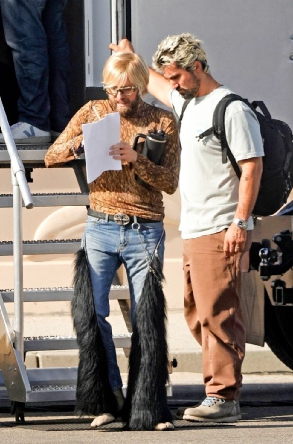 Jonah ishte veshur me një paruke me ngjyrë rëre, mjekër të rritur dhe veshje të frymëzuara nga vitet ’60, duke hyrë plotësisht në rolin e tij të ri. Ai u pa duke lexuar skenarin ndërsa dilte nga karvani për të filluar xhirimet.