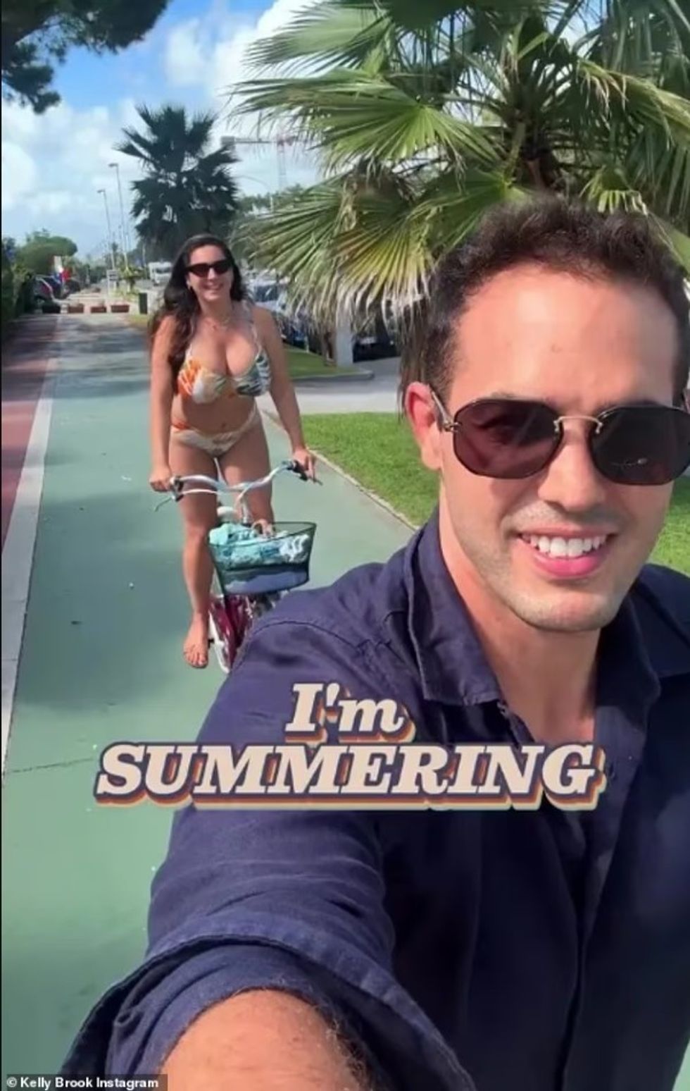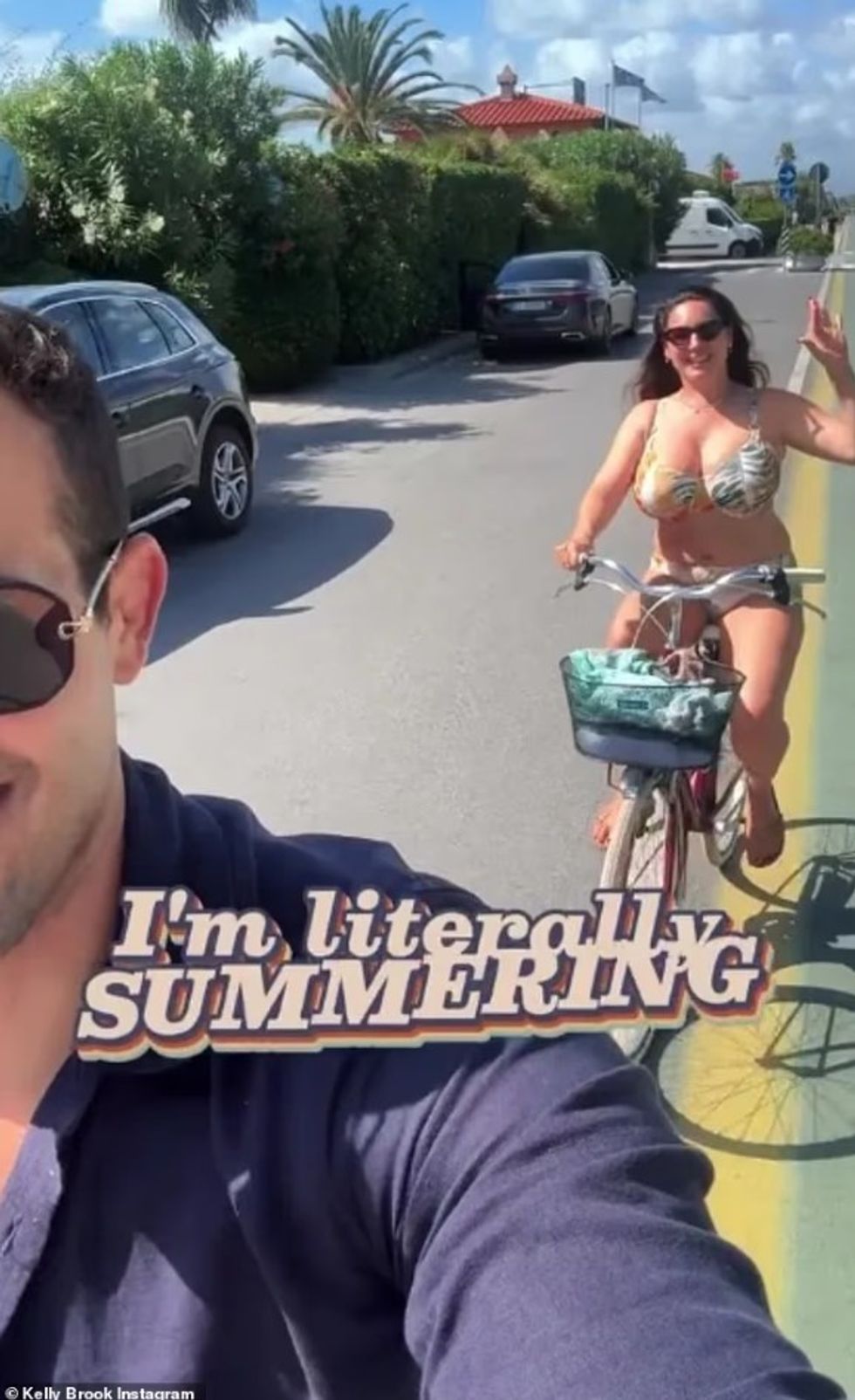 Kelly Brook ka ndarë me fansat një moment nga pushimet e saj në Toskanë, duke publikuar në Instagram një video ku shfaqet me bikini shumëngjyrëshe gjatë një xhiroje me biçikletë.