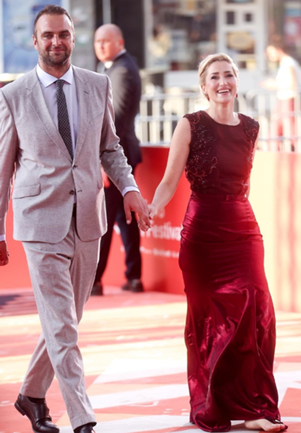 Muratovic u shfaq në festival në shoqërinë e bashkëshortit të saj, prezantuesit Danko Delibasic, i cili mbante veshur një kostum klasik gri.