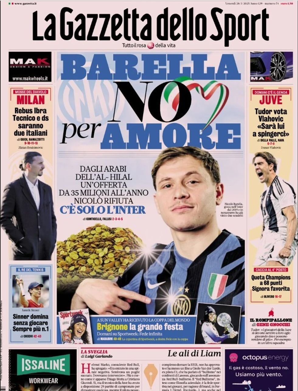 Sipas La Gazzetta dello Sport, Barella është ndër emrat kryesorë në listën e ngushtë të Al-Hilal, me klubin të gatshëm të investojë një pjesë të konsiderueshme të kursimeve të tyre nga largimi i Neymar.