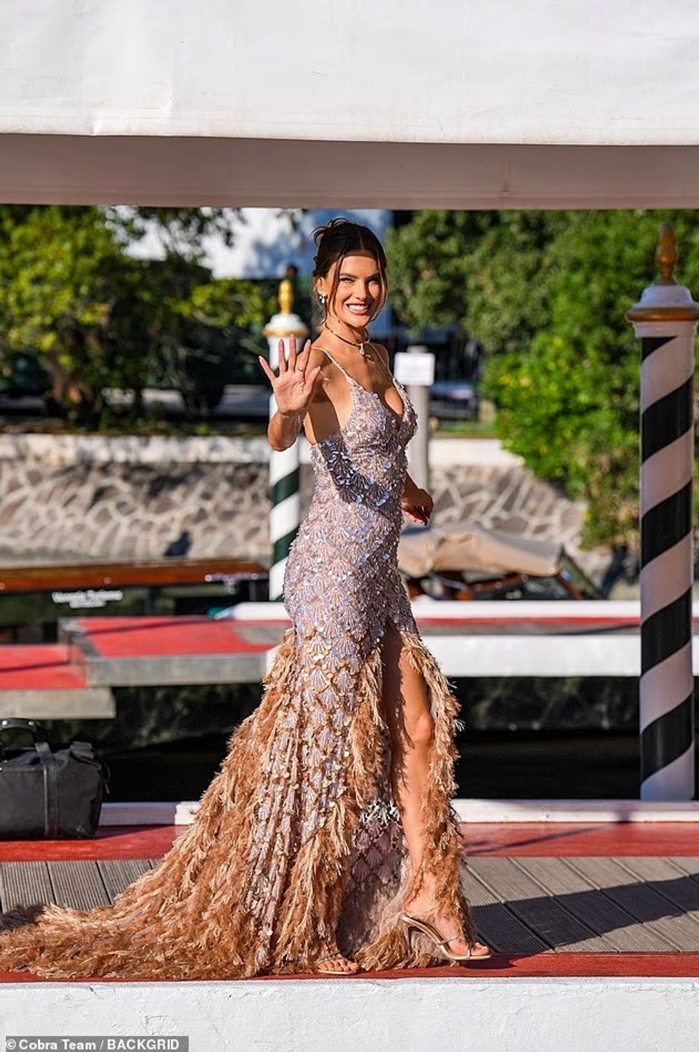 Alessandra Ambrosio tërhoqi vëmendjen e të gjithëve në ceremoninë e mbylljes së Festivalit të 81-të të Filmit në Venecia, të shtunën mbrëma.