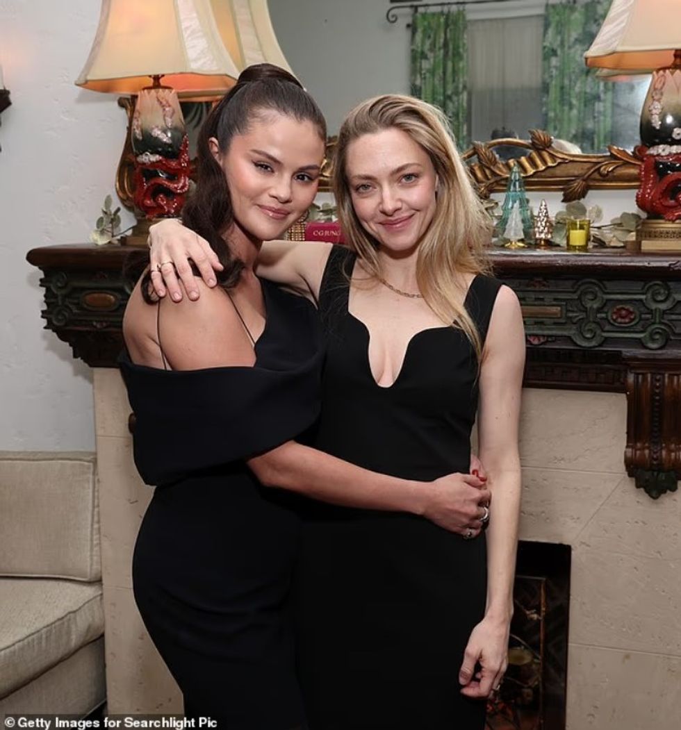 Amanda u shfaq elegante me një fustan midi të zi pa mëngë dhe dekolte të thellë, ndërsa Selena zgjodhi një fustan të shkurtër të zi me supe të zbuluara, të kombinuar me geta dhe taka të lëmuara, shkruan DailyMail.