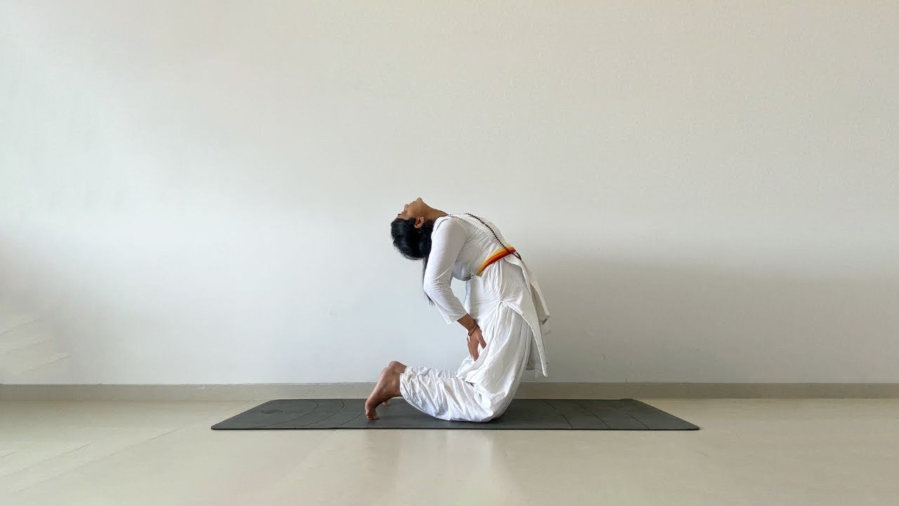 Tibetiani i tretë - mbështetja në shpinë: Gjunjëzohuni në dysheme me gjunjët në gjerësinë e ijëve dhe vendosni pëllëmbët në pjesën e poshtme të shpinës. Merrni frymë dhe përkuluni mbrapa, duke e përkulur kokën. Nxirrni frymën kur ktheheni në pozicionin e drejtë.