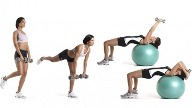Si të veprohet: Merrni disa pesha për ushtrime dhe shtrijuni në atë mënyrë që pjesa e mesme dhe e lartë e trupit të jenë në topin pilates. Ngrini kërdhokullat në atë mënyrë që