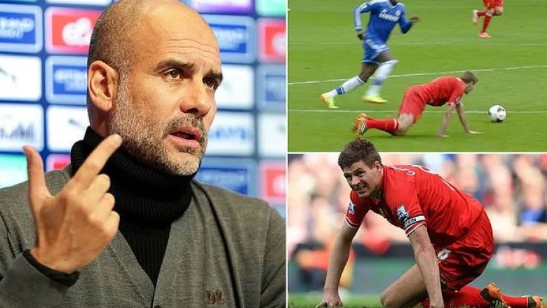 Derisa klubi është duke këmbëngulur se janë të pafajshëm për të gjitha akuzat, Guardiola ka dalë në një konferencë për shtyp duke iu referuar momentit më famëkeq të Gerrard që në thelb ia “dhuroi” Cityt titullin e Ligës Premier në sezonin 2013/2014.