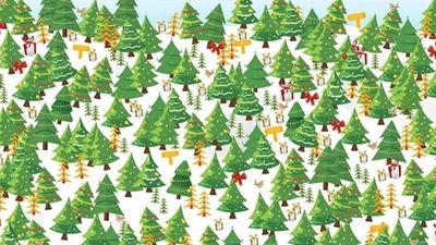 Në ilustrim ndodhen mbi 150 pemë Krishtlindjesh, por vetëm njëra prej tyre ka yllin në majë.