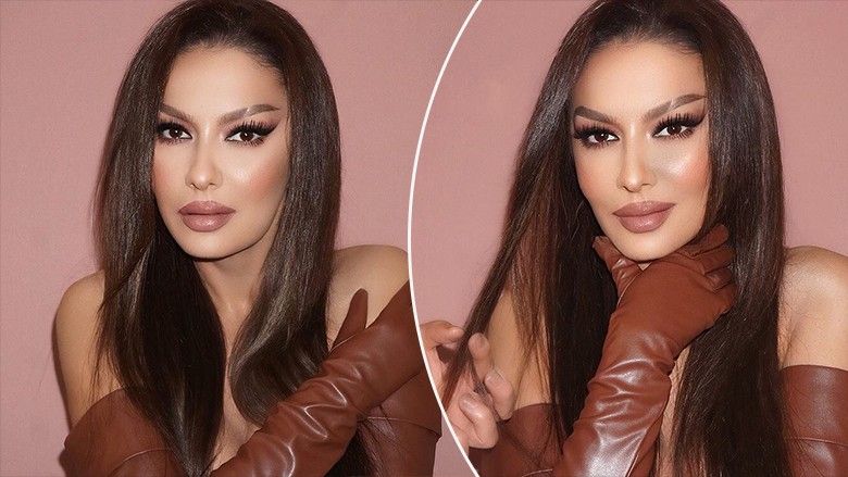 Ajo ka pozuar e veshur në ngjyrë kafe me një palë doreza të po të njëjtës ngjyrë, ndërsa dukej mjaft atraktive.