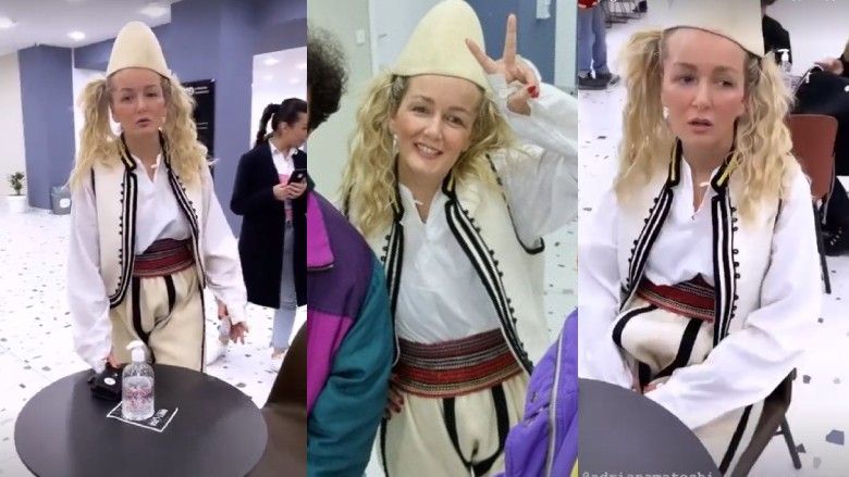 Ajo madje publikoi edhe një video shumë interesante në TikTok, ku shihej duke bërë gjeste në studion e grimeres Sellma, ndërkohë që kishte të veshura të njëjtat rroba kombëtare. /Telegrafi/