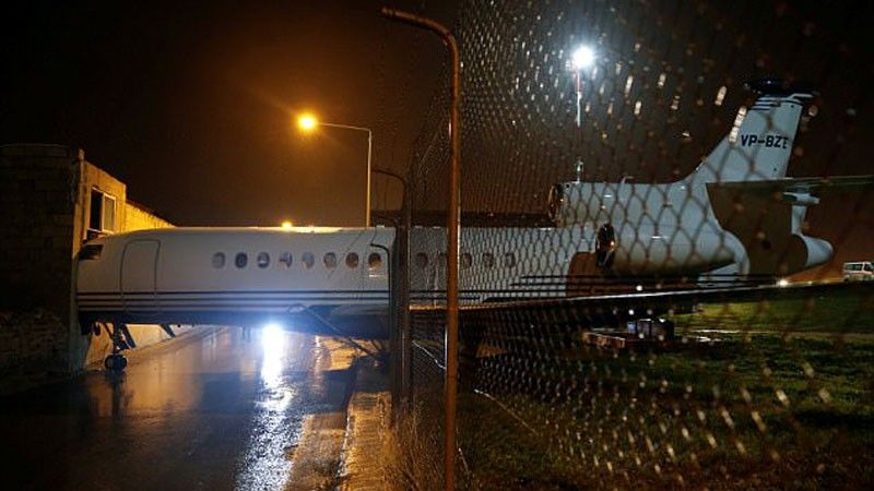 Një aeroplan privat në pronësi të miliarderit Lord Ashcroft është fotografuar teksa ka dalë nga pista dhe ka përfunduar jashtë rrethimit të saj.