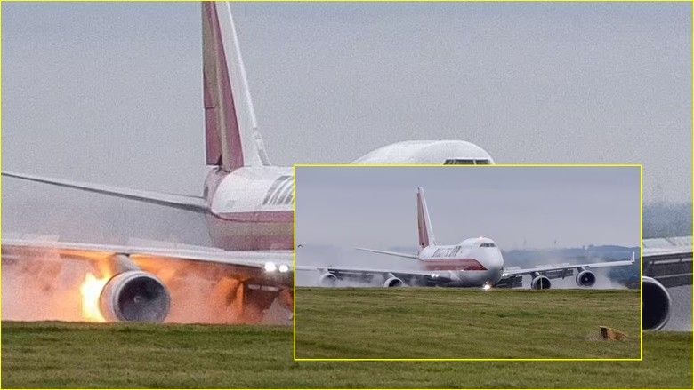 Imazhet dramatike tregojnë rrotat e Kalitta Air Boeing 747 të ndezura pasi përplasen në asfalt.