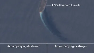 Ka të ngjarë të jenë pjesë e grupit të sulmit të aeroplanmbajtëses Lincoln, por nuk mund të identifikohen saktësisht se cilat anije janë të dukshme. /Telegrafi/