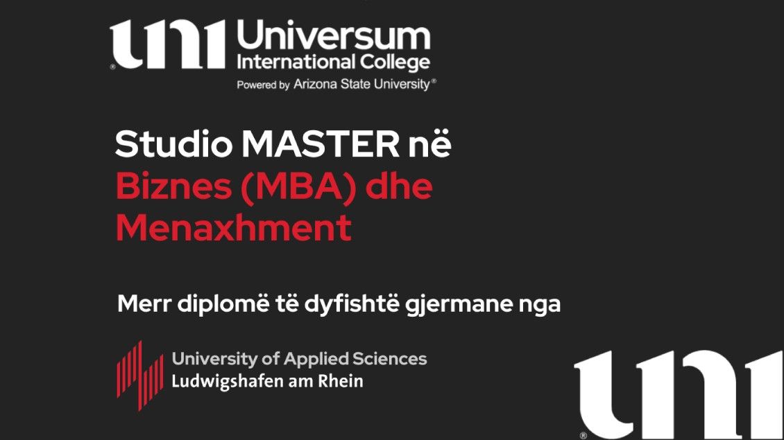 Fillo studimet Master në UNI - Universum International College dhe vazhdo vitin e dytë në Gjermani dhe merr diplomë të dyfishtë nga Ludwigshafen University of Business and Societydhe UNI, punë praktike e garantuar me pagesë në #Gjermani.