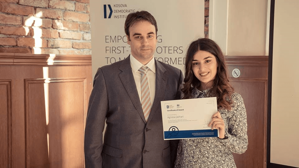 Agnesa Jashari, studente e RIT KosovëTM (A.U.K)është njëra nga fituesit e garës “Kërko Llogari” të organizuar nga KDI (Instituti Demokratik i Kosovës). Agnesa është studente e vitit të parë ne RIT KosovëTM (A.U.K) dhe plani i saj është të zgjedhë Multimedia&Web Dizajn dhe Politika Publike si drejtime të studimit.
