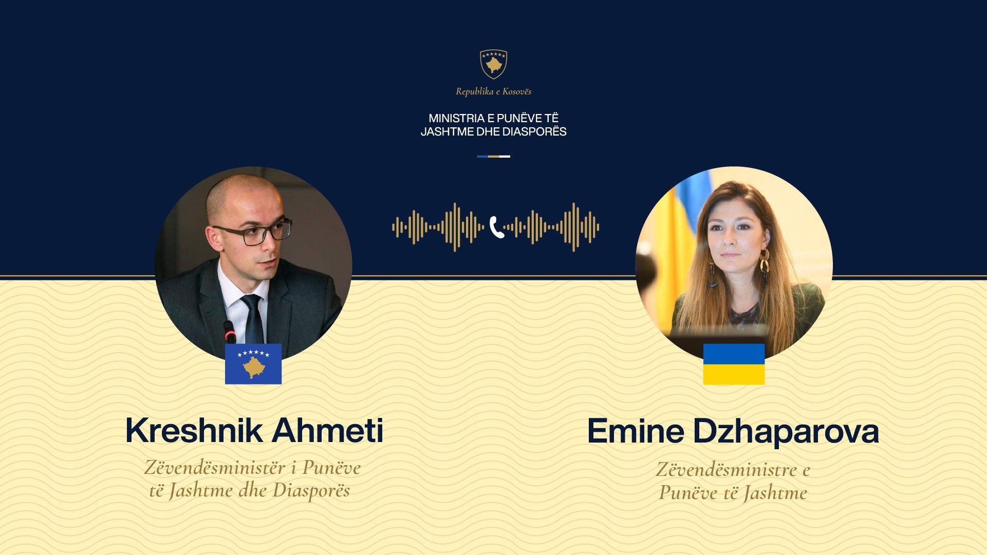 Zëvendësministri i Punëve të Jashtme dhe Diasporës, Kreshnik Ahmeti ka zhvilluar sot një telefonatë me homologen e tij ukrainase, Emine Dzhaparova.