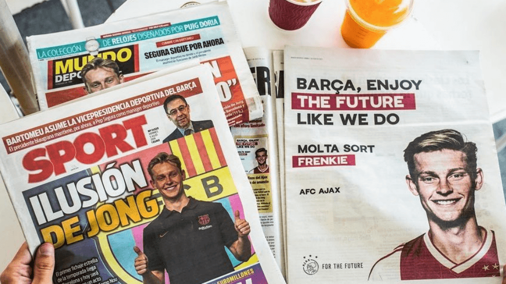 Ajax e ka blerë nga një faqe të gazetave sportive katalunase për t’i uruar fat De Jongut te Barcelona