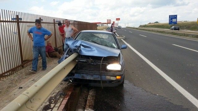 Vetura e tipit Golf ka hyrë në barrierën e autostradës që shkon për Mitrovicë. Metali i barrierës ka depërtuar anë e përtej veturës.