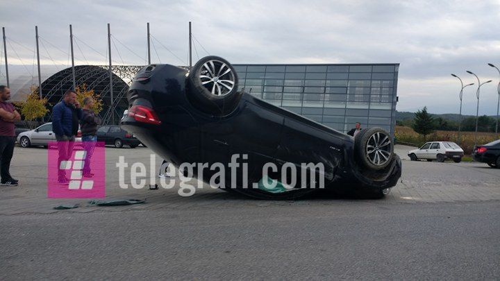 Një automjet është rrokulisur dhe është dëmtuar rëndë. Në fotot që ka siguruar Telegrafi nga vendi i ngjarjes shihet se njëra nga katër rrotat e saj është shkëputur tërësisht.