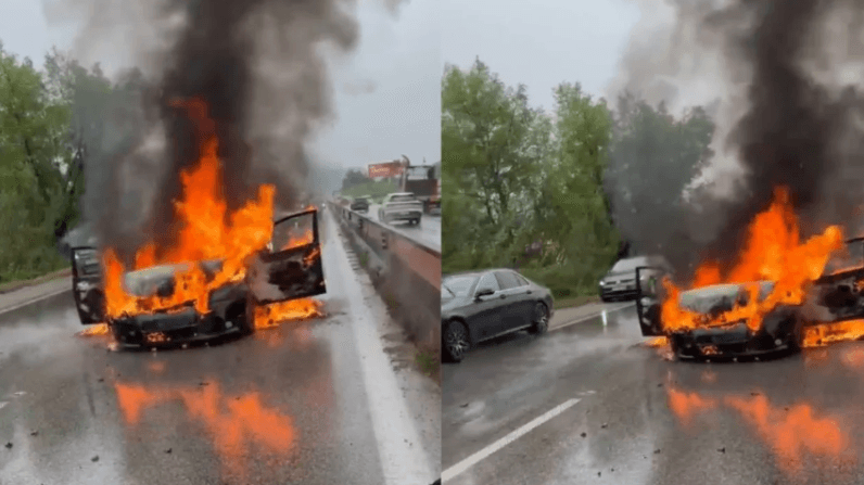 Nga pamjet e siguruara nga Top Channel shihet makina e cila ka marrë flakë.