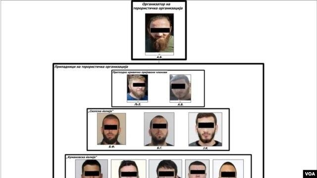 "Pas procedurës gjithëpërfshirëse hetimore, Prokuroria sot në Gjykatën Penale në Shkup ngriti aktakuzë kundër pesë personave nga Kumanova dhe tre nga Shkupi. Sipas veprimeve të përshkruara në aktakuzë, B.G (28), R.A (31), S.I (31), A.S (21) dhe J.K (25) kanë kryer veprën penale "Organizatë terroriste", i akuzuari B.F (33) ka kryer veprën penale "Organizatë terroriste" dhe një vepër penale "shërbim në ushtri armike. I akuzuari D.A (21) akuzohet se ka kryer veprën penale "Përpunim të paautorizuar, mbajtje, posedim dhe tregti me armë ose materie shpërthyese". I akuzuari I.M (23) të njëjtën vepër penale", thonë nga Prokuroria.