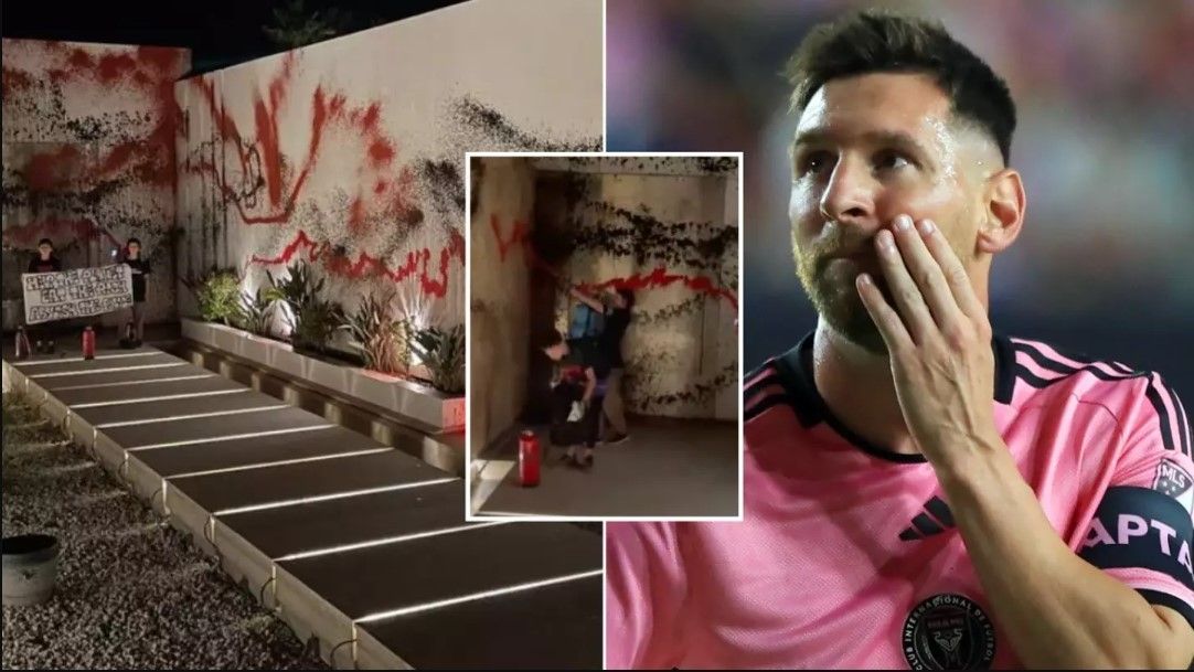 Aktivistët kanë spërkatur me bojë kuq e zi fasadën e bardhë të vilës së Messit dhe këtë e kanë bërë të ditur edhe në rrjetin social X.