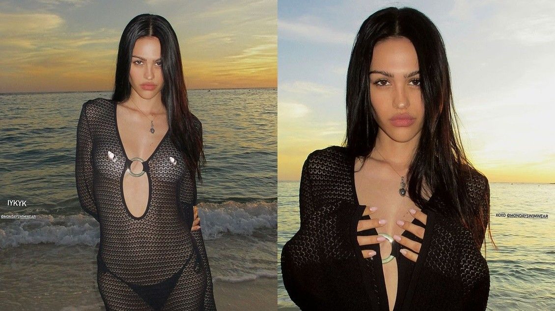 Amelia Grey Hamlin shfaqet me një fustan transparent, ndërsa pozon për një seri fotografish të mrekullueshme në plazh