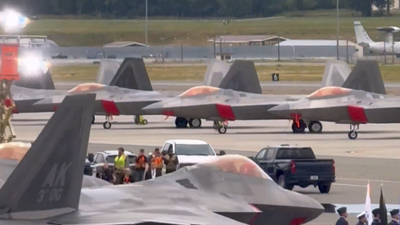 Ai ndau një video të shkurtër të vendosjes në tokë - dhe duket se një shfaqje e gjerë e fuqisë ushtarake amerikane pret Vladimir Putinin, i cili do të zbarkojë së shpejti.