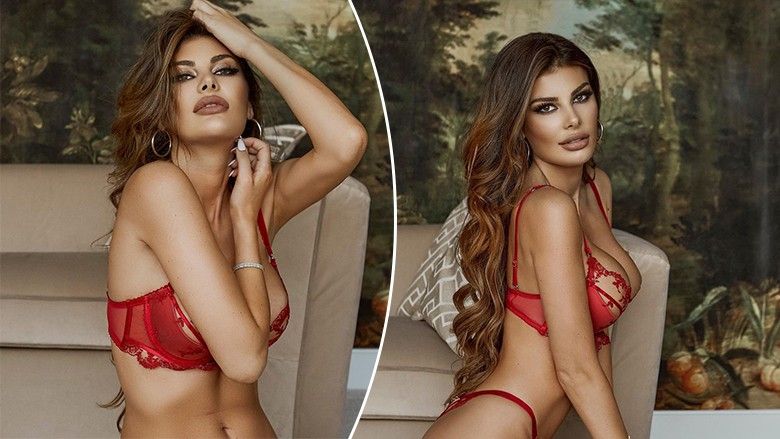 Ajo ka realizuar disa poza mjaft 'të nxehta', duke u shfaqur në të brendshme të kuqe pranë një divani.