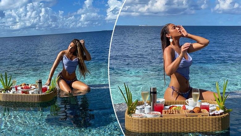 Në imazhet e fundit, Anxhelina ka pozuar me bikini, teksa shijon një mëngjes luksoz në një nga pishinat e resortit ku po qëndron.