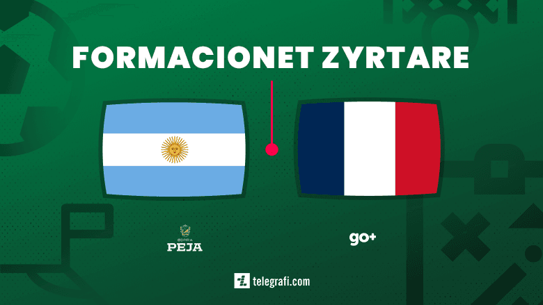 Argjentina: Martinez; Molina, Romero, Otamendi, Tagliafico; De Paul, Enzo Fernandez, Mac Allister; Di Maria, Messi, Julian AlvarezFranca: Lloris; Kounde, Varane, Upamecano, T. Hernandez; Tchouameni, Rabiot, Griezmann; Dembele, Giroud, Mbappe;/Telegrafi/