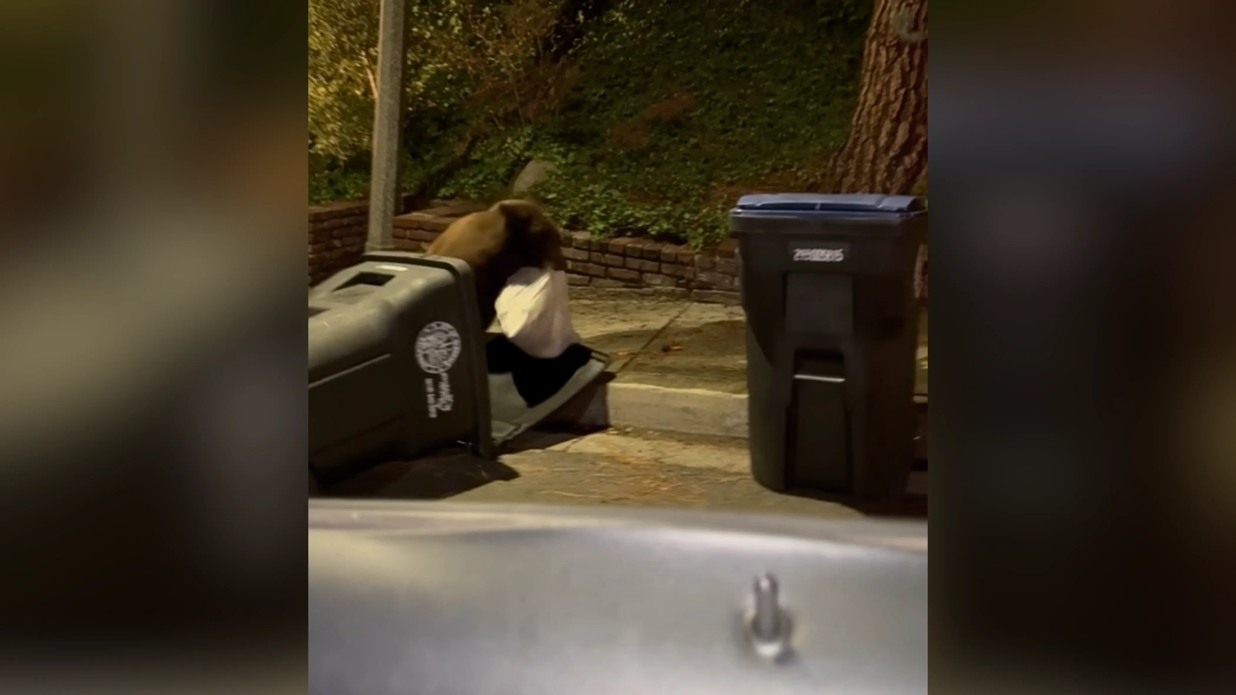 Një burrë nga Kalifornia ka filmuar një ari duke kërkuar në një kosh plehrash buzë rrugës dhe duke u arratisur me një qese.