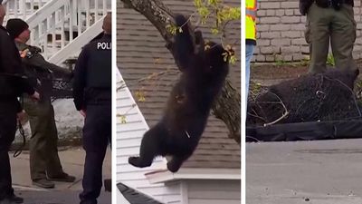 In Albany, the animal climbed a tree. It was tranquilized with a dart and then fell into a net stretched by rescuers.