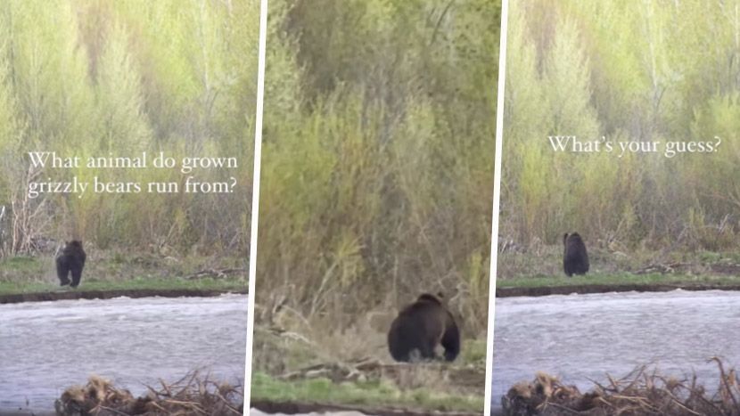 Në pak kohë, videoja u bë virale, me 60 mijë pëlqime dhe pyetja është, a mund ta merrni me mend se nga kush po ikën grizzly?
