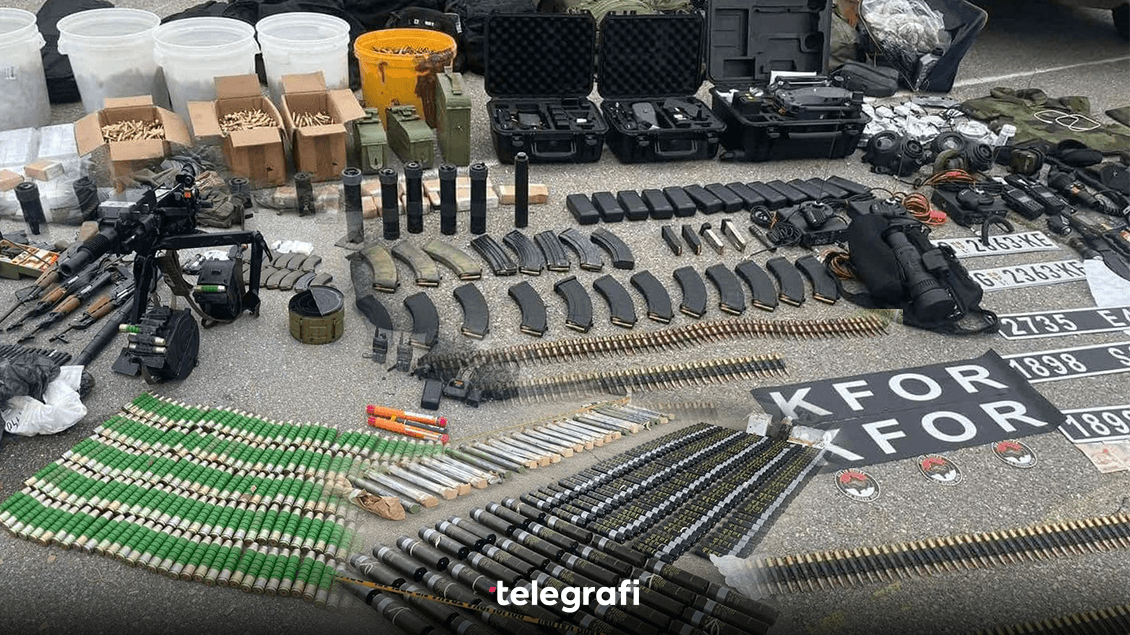 "Sipas informacioneve fillestare bëhet fjalë për gjetjen e dhjetëra, qindra armëve të llojeve dhe kalibrave të ndryshëm, uniforma dhe pajisje logjistike, përfshirë armë ushtarake të kalibrit të rëndë si granata, zolla, mitralozë, kallashnikov etj. etj", njoftoi Policia.