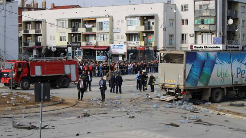 Ndryshe, një kamion i një kompanie të ujit nuk ka arritur t’i ndal frenat dhe si pasojë goditi një numër të madh të automjeteve.