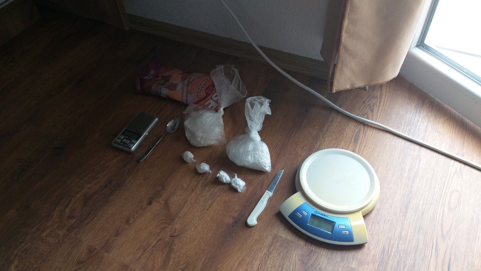 Aty janë gjetur dhe konfiskuar si prova materiale: gjashtë paketime me substancë që dyshohet të jetë kokainë me peshë 220 gramë, dy peshore dhe prova tjera që do të përdoren në procedurë të mëtejme.