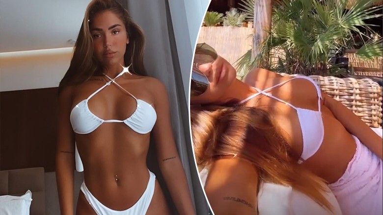 Bukuroshja me prejardhje nga Peja dukej më se tërheqëse në bikini të bardha, teksa vinte në pah linjat e përkryera trupore.