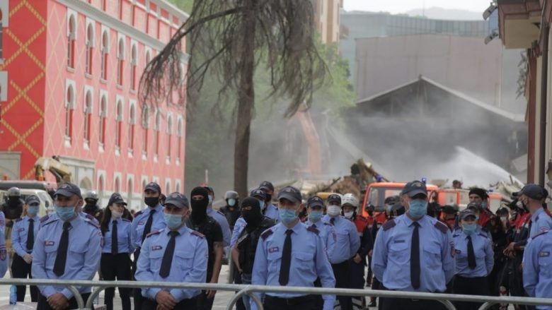 Qytetarët janë grumbulluar pranë zonës ku deri dje ishte Teatri Kombëtar, ku mediet në Shqipëri raportojnë se protesta do të monitorohet nga rreth 1000 efektivë policie.