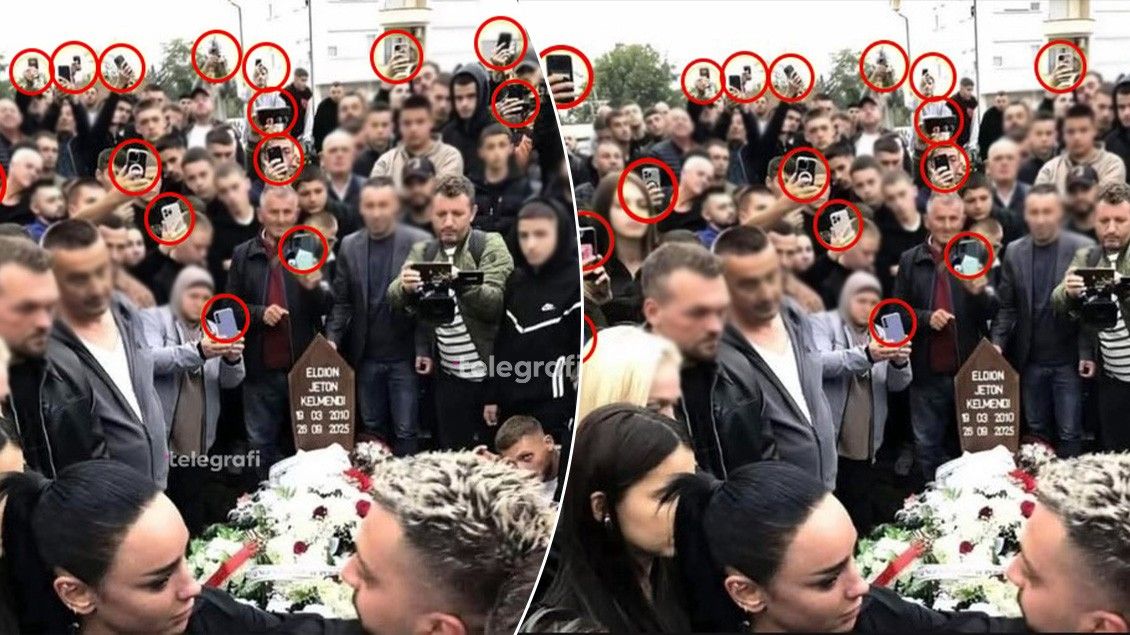 Në një fotografi të publikuar nga ceremonia, shihet qartë se dhjetëra persona, në vend që të respektonin privatësinë dhe dhimbjen e familjes, mbanin celularët e tyre në duar duke filmuar apo fotografuar këtë moment.